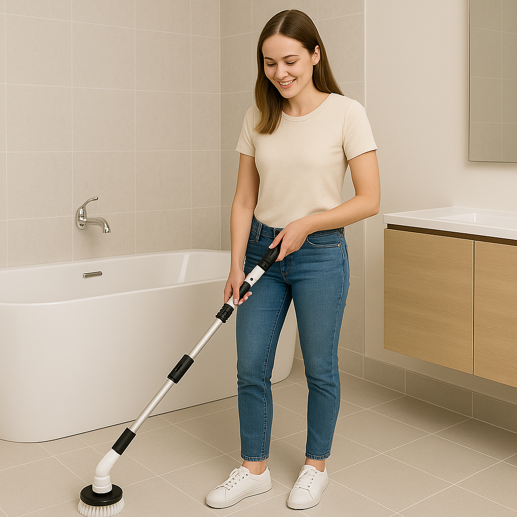 Este cepillo eléctrico es increíble. Limpio todo mi baño en menos de la mitad del tiempo habitual, y no tengo que agacharme constantemente. Una compra genial.